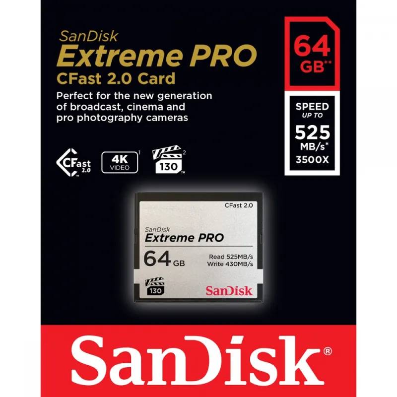 - SanDisk Extreme PRO CFast 2.0 Memory Card 525MB/s 64 GB