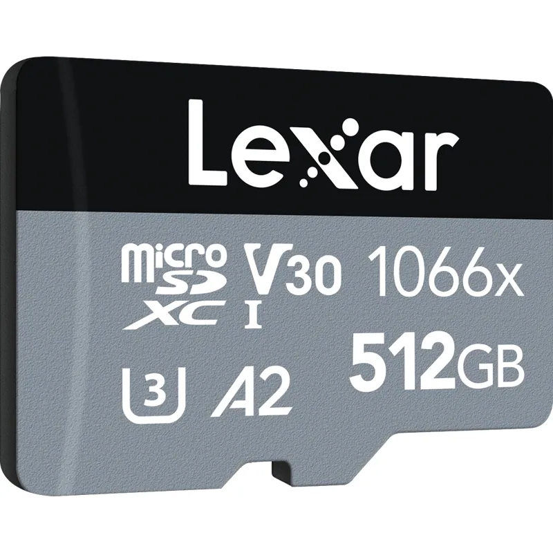 Capture your adventures in 4K UHD Designed for your action cameras, drones, or Android™ smartphone, the Lexar® Professional 1066x microSD™ UHS-I Card SILVER Series lets you quickly capture and transfer high-quality photos, including Full-HD and 4K UHD video with speeds up to 160MB/s read, and up to 120MB/s write. The card is U3, V30 and A2 rated for high-speed performance. This card gives you the speed and storage you need to capture more adventures on the go.