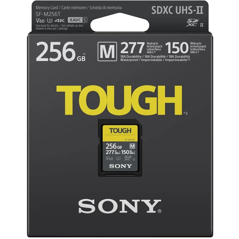Ultra tough SD Memory Card for DSLR and 4K cameras with up to 277 MB/s read speed and up to 150 MB/s write speed.