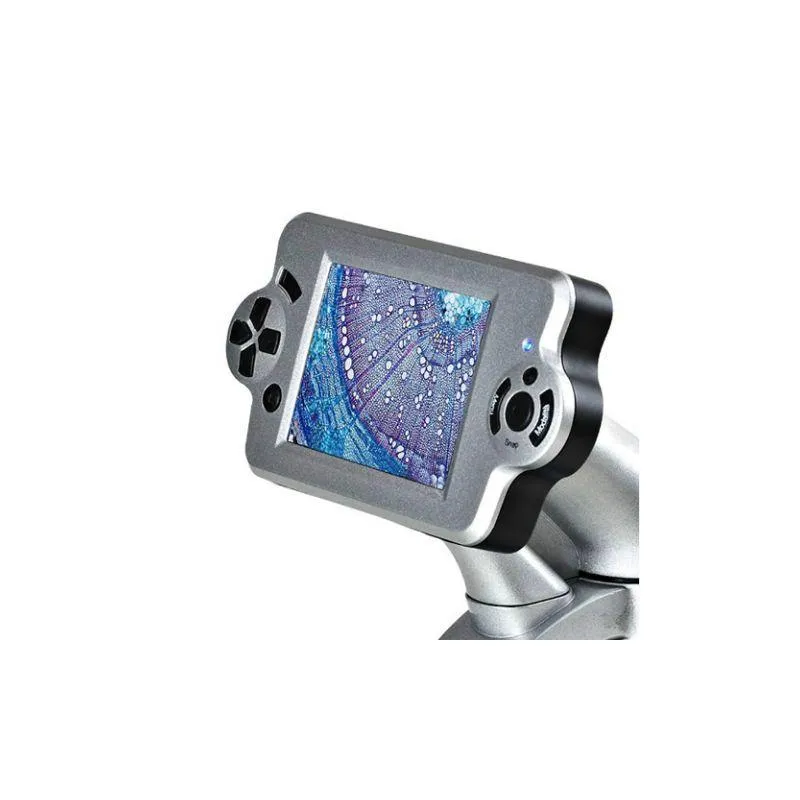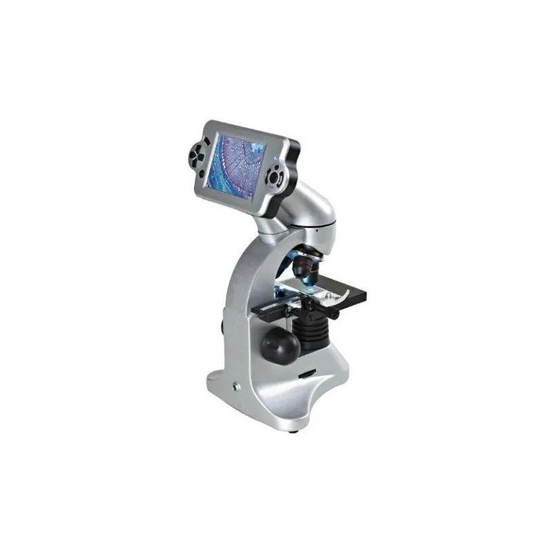 .The Byomic Deluxe Microscope is equipped with a 3.5 inch LCD screen and has a magnification of 40x to 1600x. The deluxe microscope enables you to view the objects you wish to study through the eyepiece or via the integrated LCD screen. The removable LCD screen makes it possible for multiple people to view the object(s) being studied, at the same time. Further, the LCD screen’s integrated 2MP camera enables to you to photograph the object(s) you see under the microscope. The LCD screen has a 512 MB storage capacity where the images taken are saved. These photos can then be transferred to a PC via the supplied USB cable. When you have connected the microscope to the computer, you can no longer use the live-view function. Alternatively, an SD card can be inserted into the LCD screen. The standard magnification of the Deluxe Microscope is 40x to 400x but with the 4x digital zoom, it is possible to magnify up to 1600x.