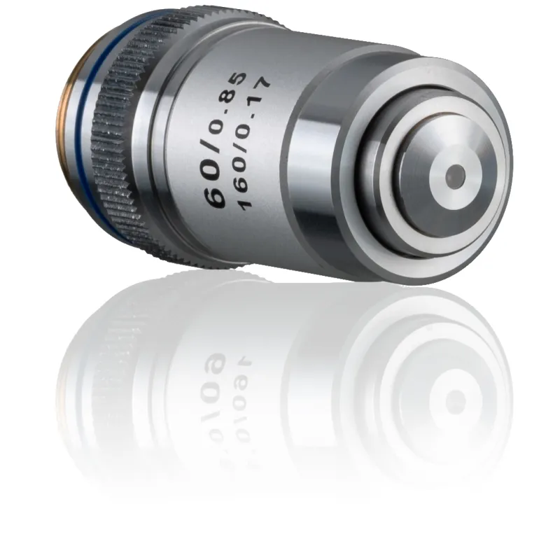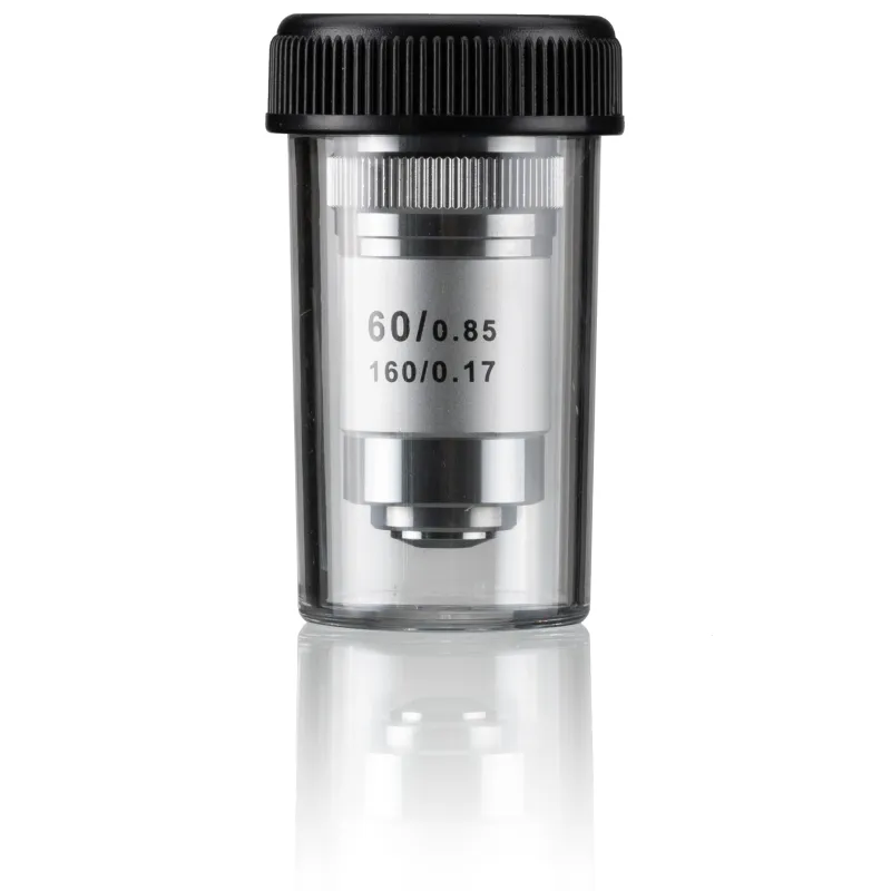 The BRESSER DIN-Objective 60x is an achromatic objective with standard diameter to enhance the magnification variety of your BRESSER Erudit DLX or Researcher Microscope. The objective has a parfocal length of 45mm. It is not recommended for the models Erudit Basic Mono/Bino, as these have a shorter parfocal length.