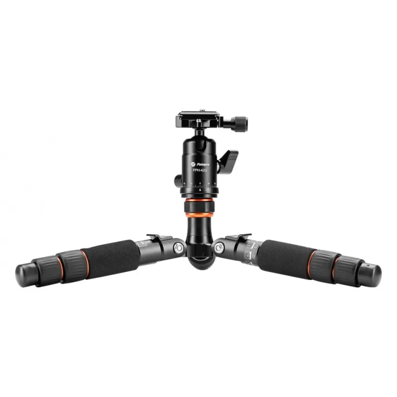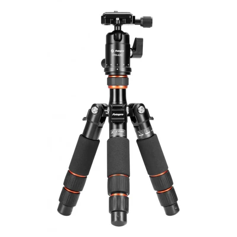 The Fotopro X-go Mini is an ultralight tripod made of aluminium and carbon fibre, designed for photographers seeking a functional and compact solution. It is ideal for travelers, macro enthusiasts, and vloggers.