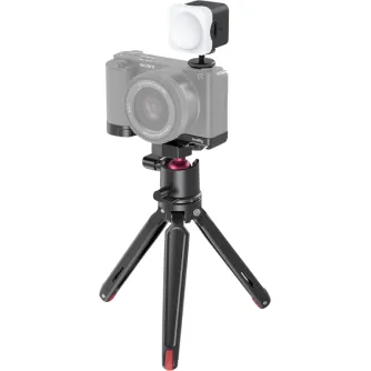 SmallRig Vlogger Kit for Sony ZV-E10 3525 is a portable shooting kit designed for vloggers to improve the video quality and make it easier for vlogging. The kit includes a base plate, Arca-type tripod and mini LED light, which suits handheld selfies and tripod shooting. Its baseplate is attached to the camera with a 1/4" D-ring screw. The battery door features an open-and-close lever that maintains a good grip experience without affecting battery replacement and overall fitness; the Arca-type tripod supports hand-held selfies and a quick switch between hand-held and tabletop shooting modes. The compact mini portable LED light with four brightness levels can be widely used for macro shooting scenes such as models, toys in small spaces, and other scenes.