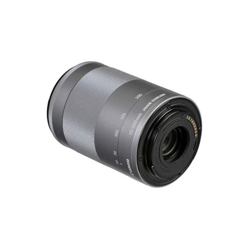 Offering a versatile range of telephoto perspectives, the silver EF-M 55-200mm f/4.5-6.3 IS STM Lens from Canon is an 88-320mm equivalent zoom designed for APS-C-format EOS M-series mirrorless cameras. The optical design incorporates one aspherical element and one Ultra Low Dispersion (UD) to control chromatic aberrations and distortions throughout the long-reaching zoom range.