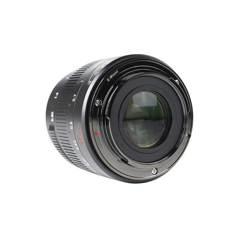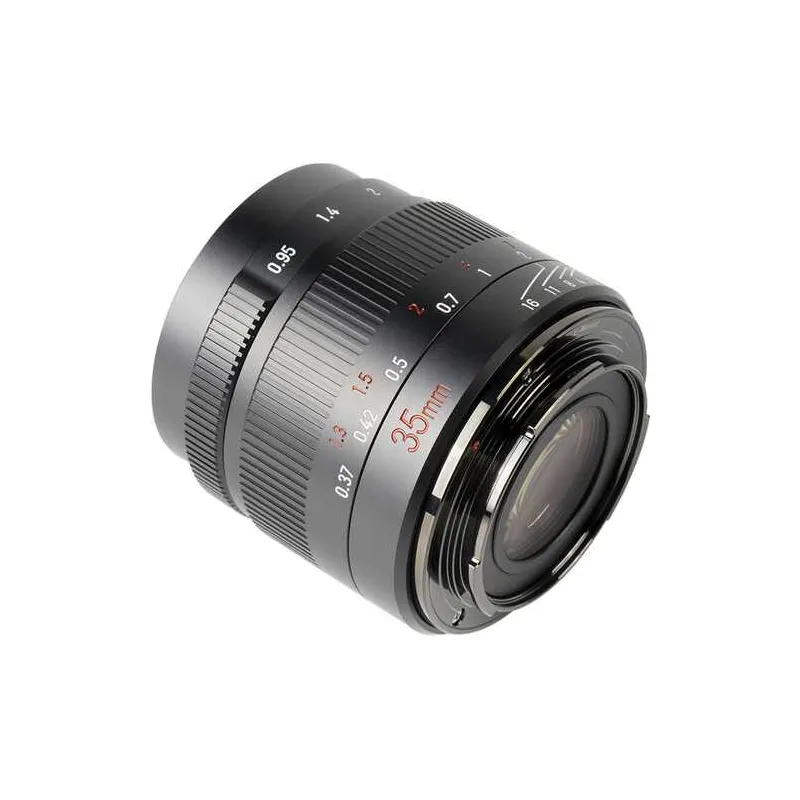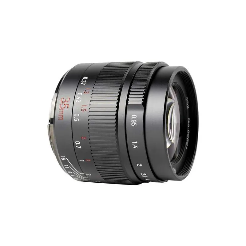 Sleek and super bright, the Sony E-mount 7artisans 35mm f/0.95 is a versatile prime characterized by its f/0.95 maximum aperture and all-manual design. The speed of the lens suits working in low-light conditions and also affords increased control over depth of field for isolating subject matter and using selective focus techniques. Complementing this is a pair of ultra-low dispersion elements, which control chromatic aberrations and color fringing in order to produce high clarity and color accuracy. The manual focus design of the lens permits working with subjects as close as 1.2' away and the manual aperture ring has also been de-clicked for silent adjustments that suit video applications. Also, this lens sports a 12-blade diaphragm that contributes to a pleasing bokeh quality.