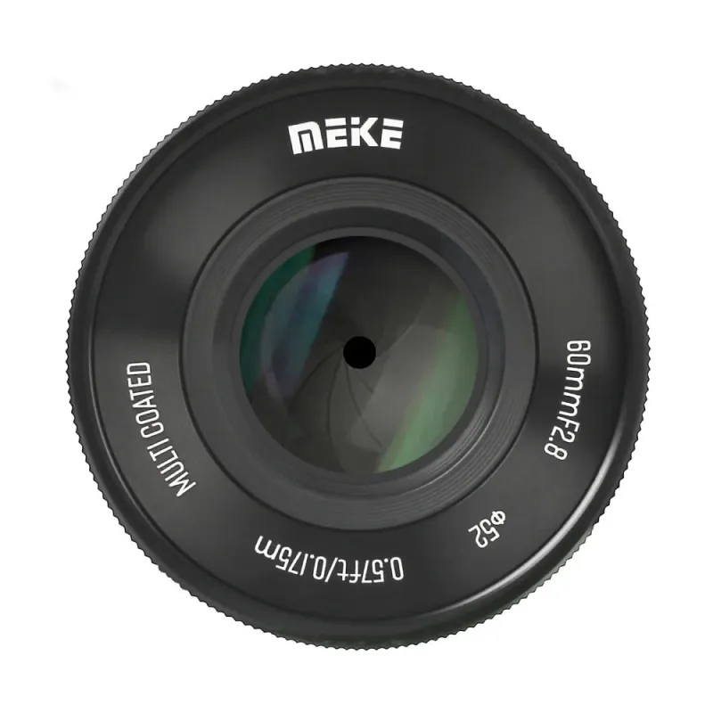Meike 60mm f/2.8 Macro is a manual focus lens for cameras equipped with APS-C/S35 sensors, and is available with E, X, Z , EF, RF, and MFT mounts. The lens offers a minimum focusing distance of 0.175 m, magnification ratio 1:1, lens structure comprised of 11 elements in 8 groups and 9-blade diaphragm. Available since 3/2023.