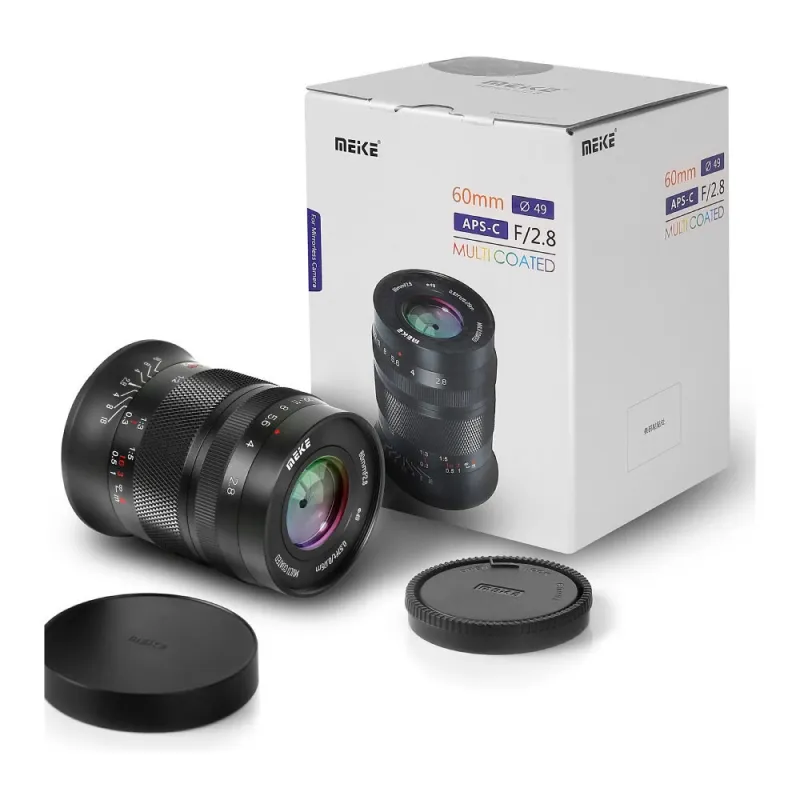 Meike 60mm f/2.8 Macro is a manual focus lens for cameras equipped with APS-C/S35 sensors, and is available with E, X, Z , EF, RF, and MFT mounts. The lens offers a minimum focusing distance of 0.175 m, magnification ratio 1:1, lens structure comprised of 11 elements in 8 groups and 9-blade diaphragm. Available since 3/2023.