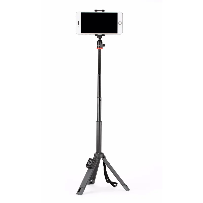 This selfie stick tripod is designed for mobile! Use as a handgrip, monopod, elevated stand or telescoping tripod. Perfect for vlogging, selfies and more! Securely holds small 360 cams, phones and phones with 360 camera attachment.