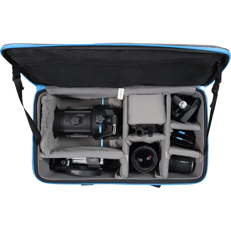 This kit combines two essential tools favored by professional gaffers and content creators: the Nanlite Forza 60CR RGBLAC LED Spotlight with built-in CRMX wireless DMX and the PJ-FMM Projection Attachment. It includes 19 and 36 interchangeable lenses, 4 gobos, 2 gobo frames, a mini reflector, a Bowens-Mount adapter, and a padded carrying case for safe transport.
