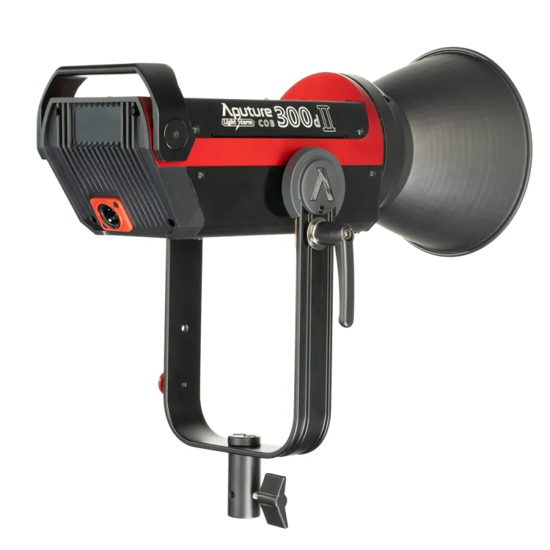 The LS C300d II's performance is backed by its design. The all-aluminum construction goes through numerous fabrication steps, and the reflector and accessory mount is the widely used Bowens S-Type. A wireless remote that allows you to control on/off and dimming functions from distances up to 328' is included. And speaking of control, Aputure also offers the Bluetooth Sidus Link App Control which allows wireless adjustments of all the light's functions as well as effects such as Lightening, Pulse, Flash, and Explosion. Ideal for sound-sensitive environments, the LS C300d II can be seen but not heard thanks to a highly efficient fan that can be turned off when absolute silence is required. The LS C300d II is ready for worldwide use thanks to its 110-240 VAC power supply but it also has two battery plates, allowing you to use V-Mount batteries for external power when mains current is unavailable. The LS C300d II is delivered with a power cable, a DMX cable to connect to the ballast, a wireless remote, a clamp, and a beefy carrying case that can support 220 lb to protect the light during transport and storage.