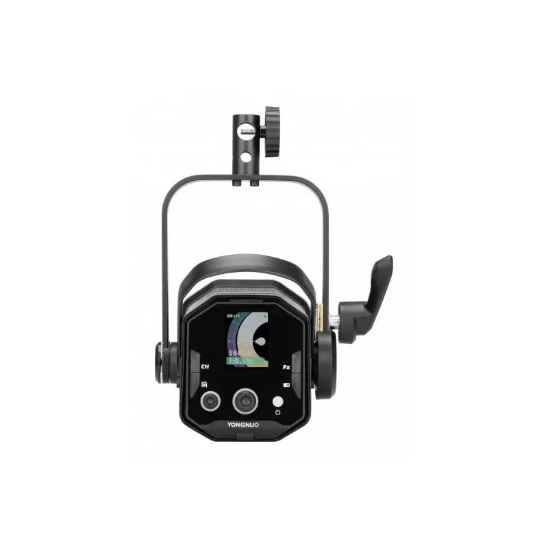 The lamp control unit installed on the housing can be removed at any time and used as a remote control. Thanks to radio communication, you can control the light from a distance of up to 50 meters. In addition to ergonomic buttons, the controller offers a clear and colorful LCD display allowing for quick and convenient adjustment of lamp settings. The device also supports Bluetooth technology. With it, you can also control the flash from the official YONGNUO app, which you can download for free from Google Play (Android) or App Store (iOS).