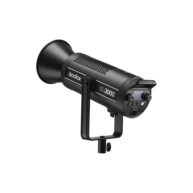 The Godox SL300II LED Video Light is a daylight-balanced 300W LED monolite-style fixture suitable for broadcasting, cinematography, online streaming, and other video applications. Dimming settings range from 0% to full power, and the light comes with a reflector.