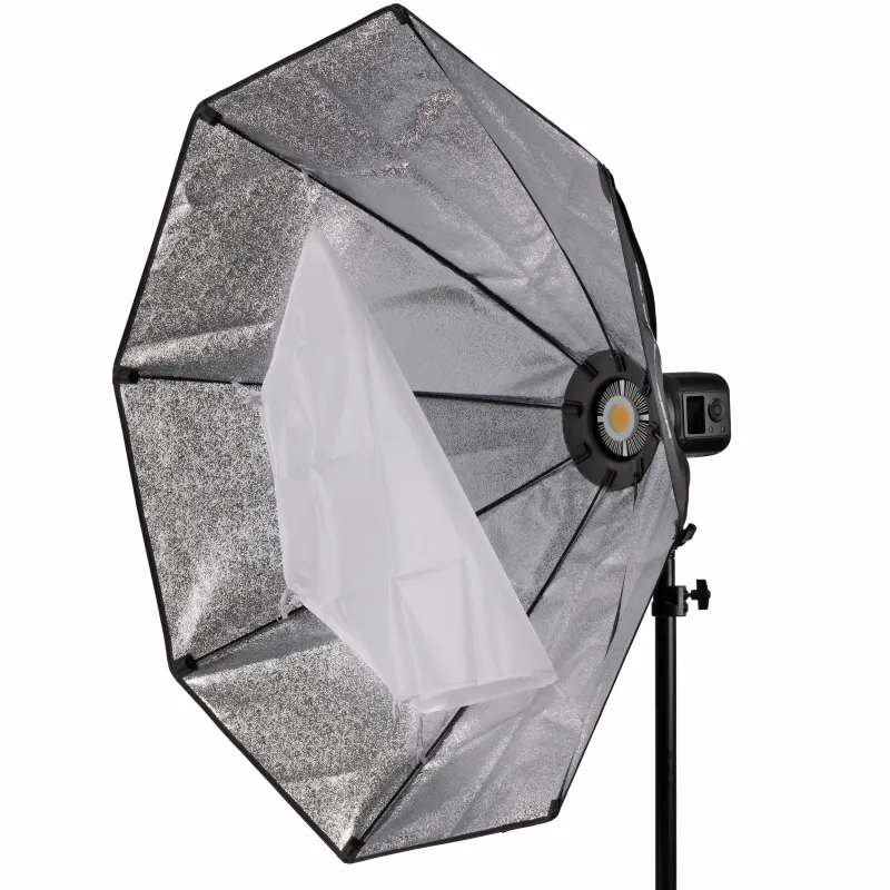 Thanks to the universal Bowens S bayonet connection, various light shapers can be used with the lamp. The octaboxes included in the scope of delivery with a diameter of 95 cm are suitable for uniform and soft illumination. The highlight of the BRESSER BR-80SL LED are 6 different special effects for video : paparazzi, fireworks, broken lamp, flash, TV and SOS. Power is supplied either by the 19V/4.7 A mains adapter or 2 optional NP-F970 rechargeable batteries for use on location.