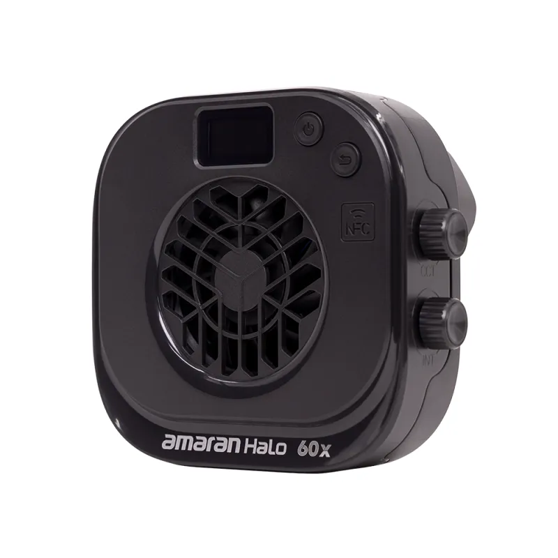 The Halo 60x is a practical lighting solution for content creators and videographers looking for a portable and versatile bi-color light without sacrificing quality. The lighting adjustments can be made onboard with an intuitive TFT screen that has a simplified colored menu or wirelessly from a distance of up to 262 using your smartphone and the amaran app—the highlight is the one-tap NFC capability. Different from the previous 60x S, the Halo 60x power options are expanded to AC power, USB-C PD sources, and the optional amaran Peak series.