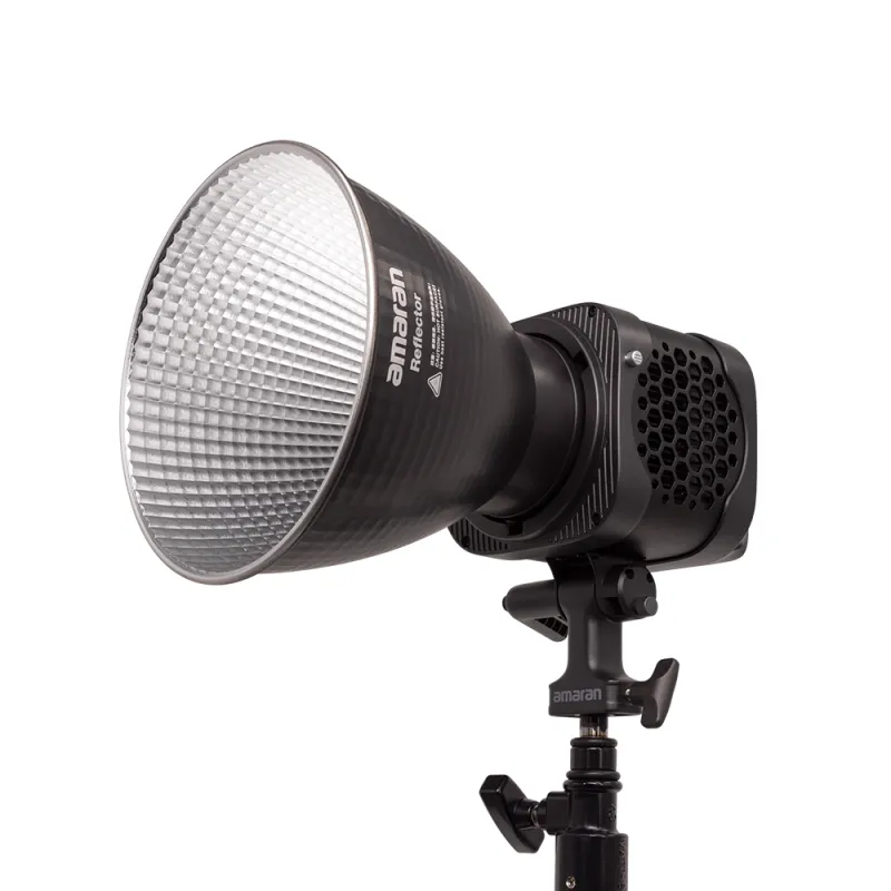 On the face of the unit is a reinforced, full-size, metal Bowens mount that is compatible with an optional reflector, Fresnel, Spotlight SE, and other modifiers. Here, an integrated tilting bracket with built-in carry grip enables easier handling, fast angle adjustments, and quick mounting to separately available stands. amaran kept the 200x model compact at 7 x 5.5 x 6.5 (with its mounting bracket) yet widely compatible thanks to its full Bowens mount versatility.
