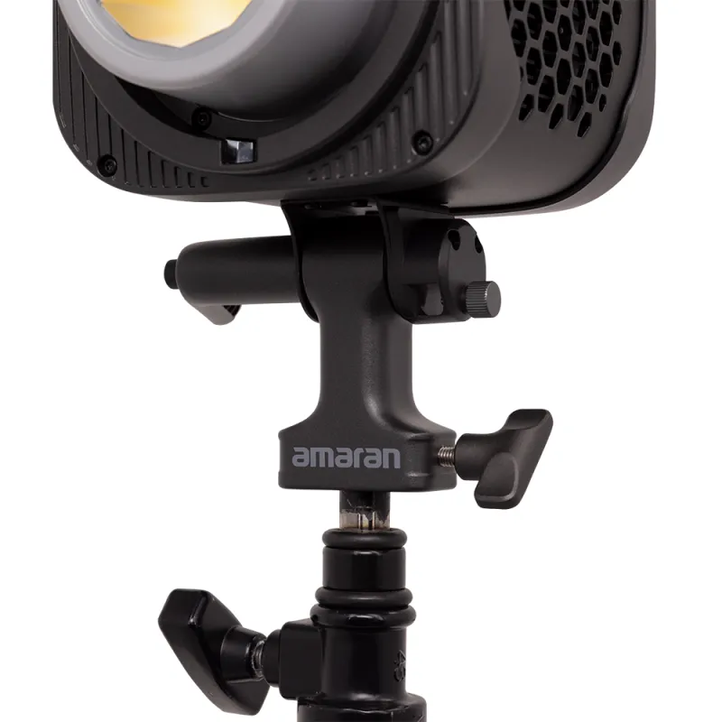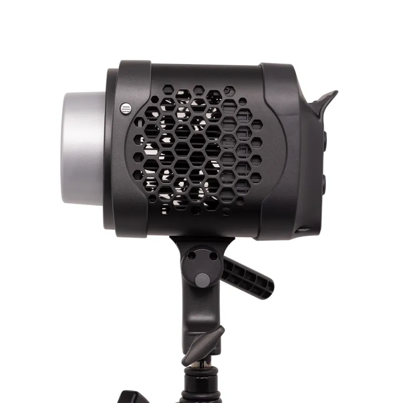 The unit features a reinforced, full-size, metal Bowens mount compatible with optional reflectors, Fresnel, Spotlight SE, and other modifiers. An integrated tilting bracket with built-in carry grip enables easier handling and quick mounting to available stands. The compact design measures 8.6 x 5.5 x 6.5" (with its mounting bracket) while maintaining wide compatibility through its Bowens mount.