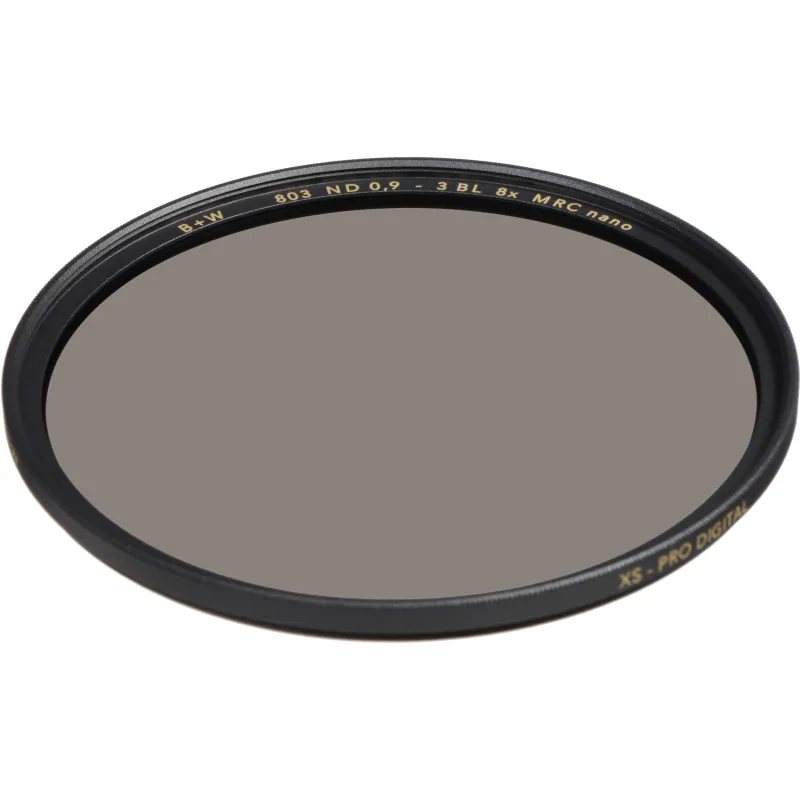 The B+W 60mm XS-Pro MRC-Nano 803 ND 0.9 Filter (3-Stop) is a neutral density filter with a 8x filter factor that provides a 3-stop exposure reduction. Its 0.9 density creates a darkening of the entire image, allowing you to photograph with a wider aperture or slower shutter speed than normally required. By increasing your aperture or slowing your exposure time, you can control depth of field and convey movement more easily. Neutral density filters do not affect the coloration of the image and are ideal for pairing with other filters.