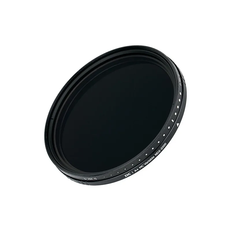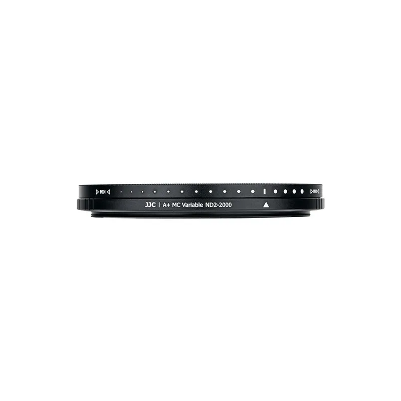 JJC 49mm ND2 ND2000 Variable Neutral Density Filter The JJC F ND2K series ND2 ND2000 Variable Neutral Density Filter is specially designed for shooting dynamic scenes, such as waterfalls, streams, waves, etc. The filter is constructed from HD optical glass and has 9 layer coating on each surface of the glass. The multiple coatings makes the filter anti scratch, anti fingerprints, anti static, oil and water resistant. Additionally, it reduces the amount of light reaching the film without affecting the color to achieve the desired effect. The frame is made of high quality aluminium alloy and the thickness is about 9mm. The neutral density can be adjusted steplessly from ND2 to ND2000 by rotating the upper part of the frame, which effectively solves the problem of carrying multi ND filters. Besides that, the filter comes with a delicate moistureproof filter case(except F ND2K82 with a PP box) to protect your filter and for easy carrying. The JJC F ND2K series ND2 ND2000 Variable Neutral Density Filter has different thread sizes available from 49 82mm. It will become a good partner for your landscape photography. ,