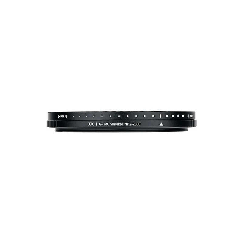 JJC 82mm ND2-ND2000 Variable Neutral Density Filter The JJC F-ND2K series ND2-ND2000 Variable Neutral Density Filter is specially designed for shooting dynamic scenes, such as waterfalls, streams, waves, etc. The frame is made of high quality aluminium alloy and the thickness is about 9mm.