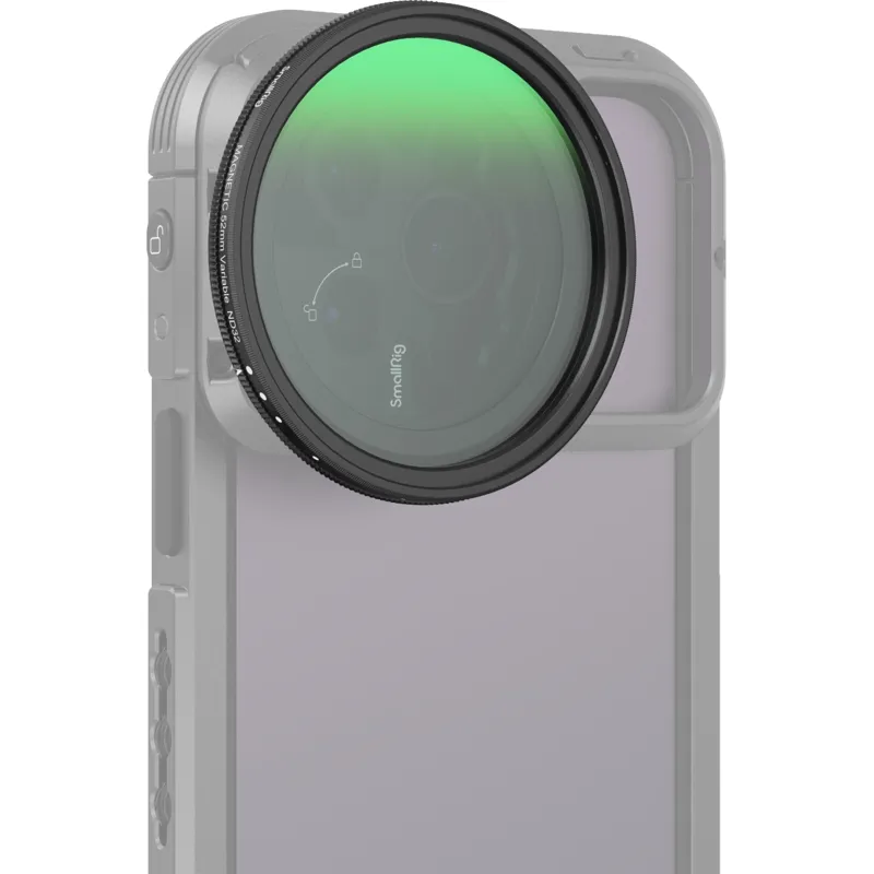 Made of German Schott B270i HD glass, the filter features waterproof, stain-resistant, mildewproof, and scratch-resistant AR coatings, with less color cast, as well as a CNC-machined ultra-thin frame. Large-diameter filter prevents vignetting even in shooting using an ultra-wide angle lens. It can be magnetically and securely attached to SmallRig magnetic filter ring adapter via the bottom anti-deflection design and rotated between a range of hard stops at ND2 & ND32 for precise control of shooting.