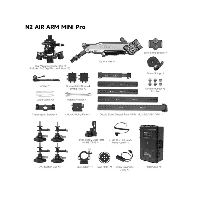 Whether you're capturing action sequences or intimate moments, the MOVMAX N2 Air Arm Mini Pro Kit empowers you to create stunning visuals with confidence and ease.