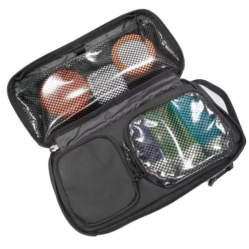 The GOMATIC Toiletry Bags come in two sizes; Pick the size that works best for you. Both are made with durable, water-resistant materials and zippers to ensure there are no leaks and your toiletries stay protected. An optional hanging strap and dedicated toothbrush pocket are a few of the many features that make these the most functional toiletry bags ever.