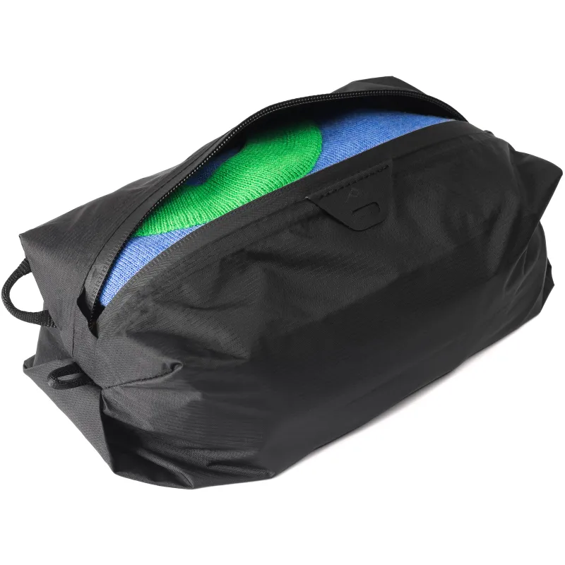 The bag can be turned into an ultra-light shoulder bag by attaching the adjustable carrying strap or the Peak Design camera strap to the Packing Cube Cord Hook™ carrying loop (straps sold separately). The bag can also be attached to any Peak Design bag using the two external strap loops. Cord Hook™ loops can also be used as drawstrings, making it easier to open and close the bag.