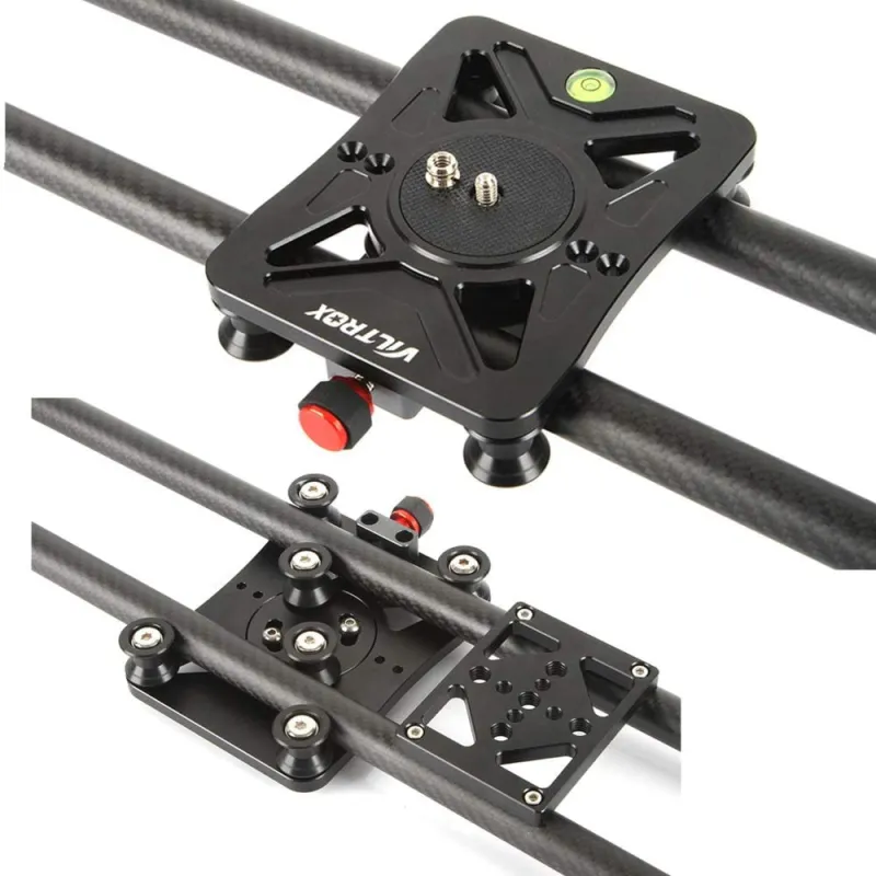 The Viltrox VC-80 Carbon Fiber Track Dolly Rail Slider is a 80cm long lightweight, durable slider with 19mm Carbon rods for extreme smooth and silent tracking & dolly shots. The Slider has multiple 1/4" mounting points for mounting on tripods both horizontally, vertically & diagonally.
