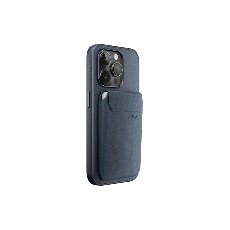 Designed by the award-winning Peak Design softgoods team, the Mobile Wallet magnetically consolidates your wallet and phone while adding brilliant utility that you wont want to live without. The Slim Wallet is crafted for card-carrying minimalists, while the Stand Wallet sports an on-demand fully-adjustable kickstand, ensuring youll never again be forced to haphazardly prop your phone up against your coffee. Made from durable 100% recycled nylon canvas, the unique patterning and construction minimizes bulk in your pocket. Holds up to 7 cards, which can be accessed instantly via a magnetically sealed flap. Ultra-strong MagSafe-compatible magnets grab your phone with a satisfying pop and keep your phone and wallet securely connected. The unique connection system is called SlimLink™ and its so fast and secure, it borders on magic. Once attached, a precision-tuned friction hinge lets you safely position your phone at any viewing angle, in portrait or landscape. Built to age gracefully, not stretch out, and last for many years (and phones) to come.