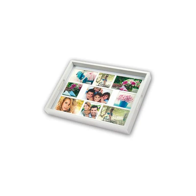 The W006 from Zep Italia is a wooden photo tray suitable for four photos of 10x10 cm and five photos of 10x15 cm. The photo frame features a white frame. The total dimensions, including the frame, are 45x35 cm.