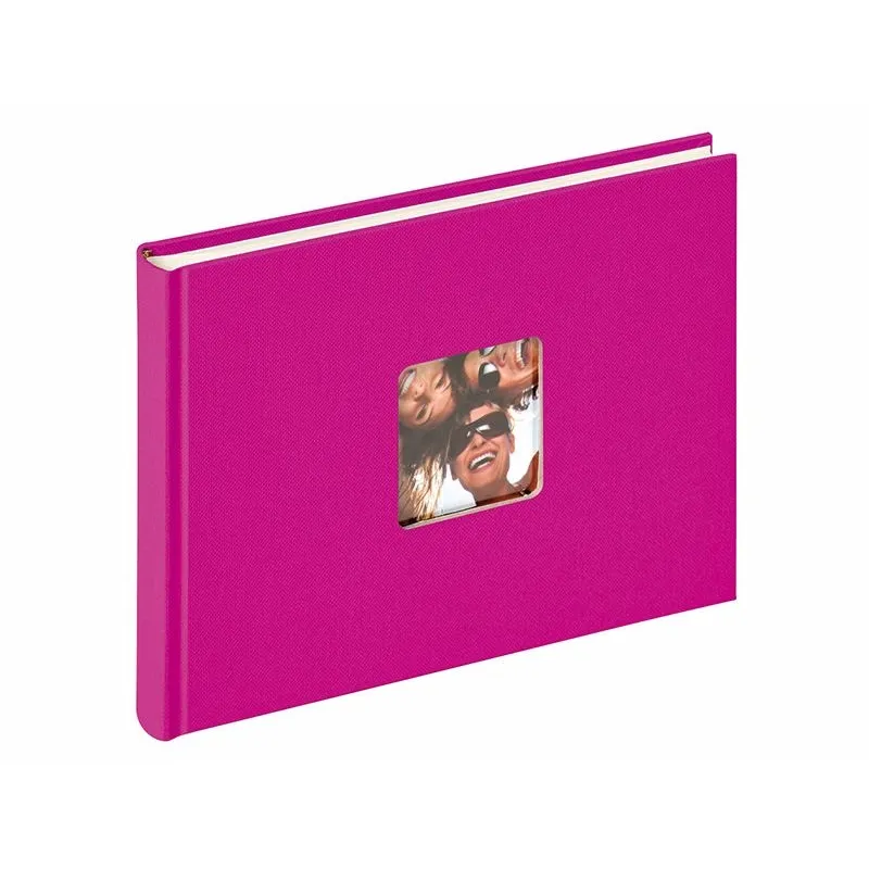 Bookbound photoalbum in sixe 22x16 cm with a die-cut on the front cover.