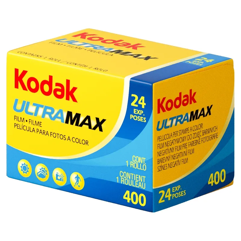 Kodak's GC/UltraMax 400 is a high-speed, daylight-balanced, color negative film offering a wide exposure latitude for greater versatility, as well as a fine grain structure with consistent and accurate colors. Optimized skin tone reproduction makes this film suitable for portraiture while a vibrant overall color palette benefits general and outdoor photography. It has a nominal sensitivity of ISO 400/27° and is well-suited to both scanning and enlarging applications.