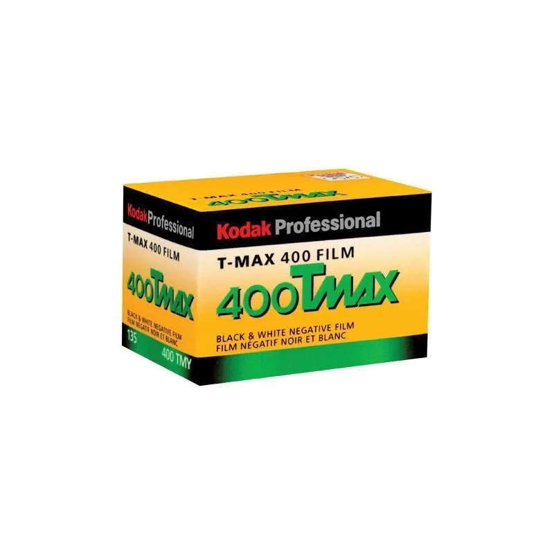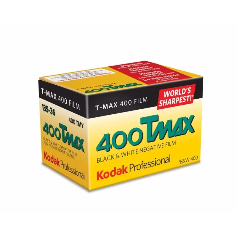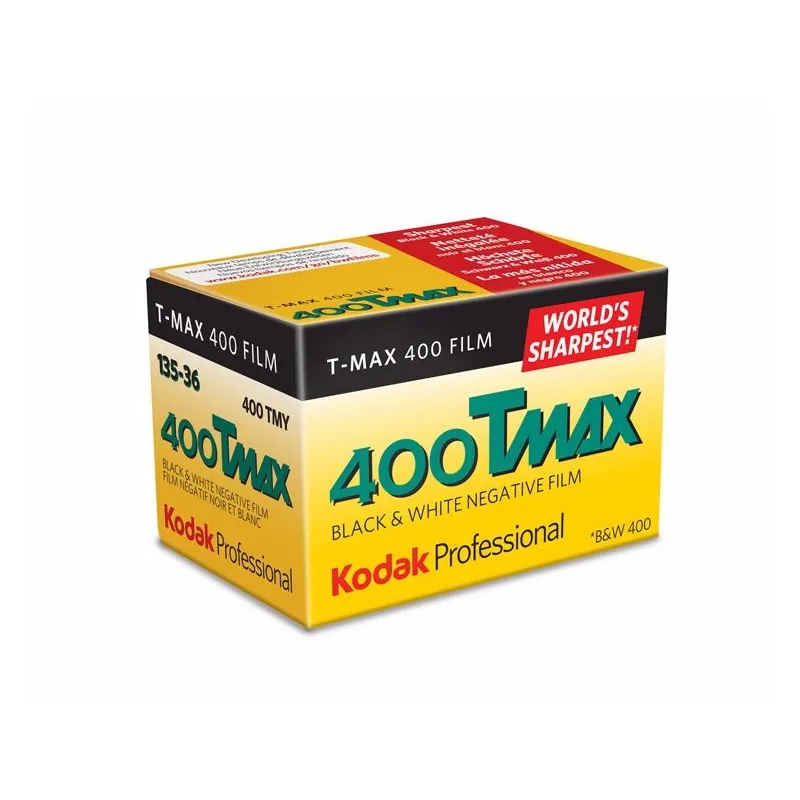 Kodak's Professional T-Max 400 is a high-speed panchromatic black and white negative film featuring a unique T-GRAIN emulsion to provide a very fine grain structure with a high degree of sharpness and edge detail. It has a nominal sensitivity of ISO 400/27° along with a wide exposure latitude for rating the film up to EI 1600 and push developing. Its versatility benefits working in difficult lighting conditions and with moving subjects, and its fine grain profile, broad tonal range, and high resolving power benefit scanning and enlarging applications. Additionally, the film is well-suited to scientific and biomedical work, especially when fluorescence in photography is required.