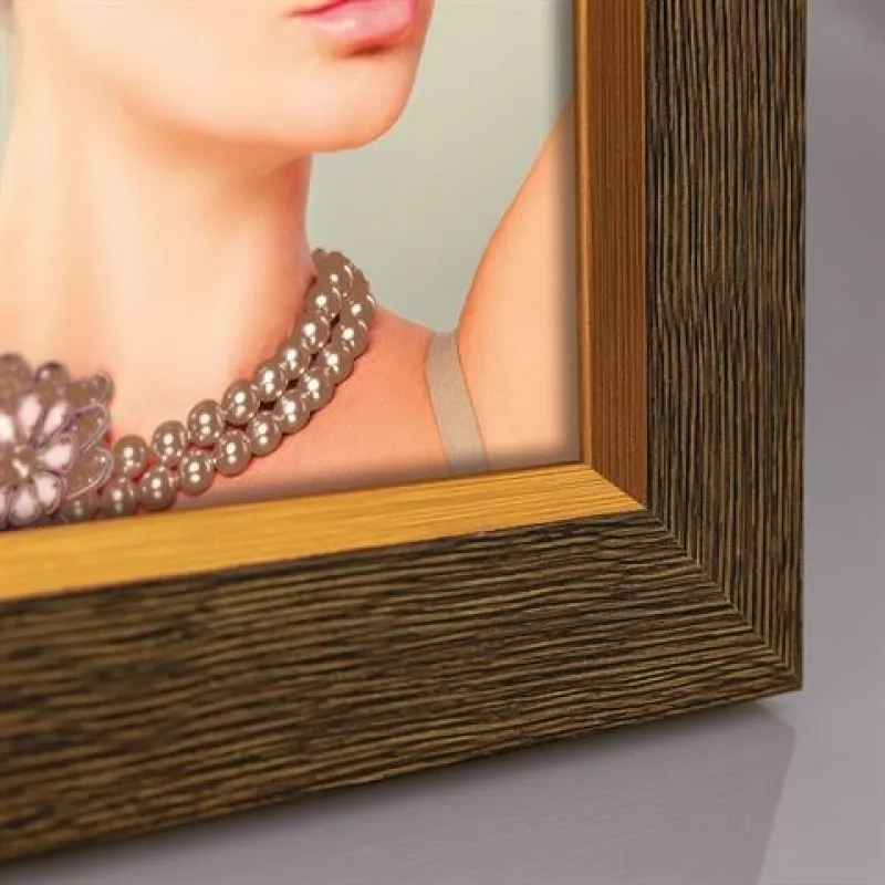 The ZRD23 Quentin Dark Brown 20x30 cm by Zep Italia is a single photo frame suitable for one 20x30 cm photo. The article stands out by its beautiful wood-colored frame, which provides an elegant look. The total dimensions, including the frame, are 22x32 cm.