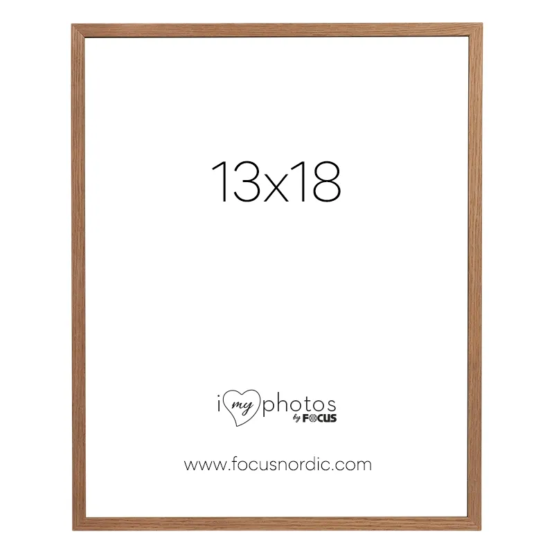 Oak colored frame with a classic style. The frame has a thin profile. The frame comes with real glass that highlights the best in your photos. With a back support which also allows you to place the frame on a shelf or table. Frame profile is 22mm deep and 13,5mm wide. The picture size of the frame is 13x18cm.