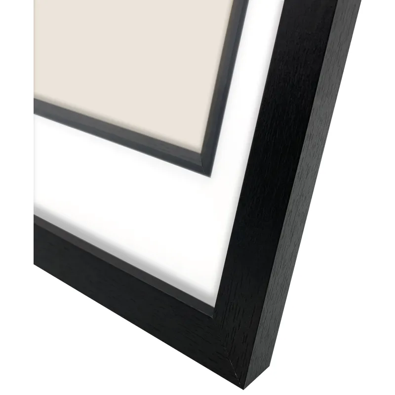 A distinctive feature is the passepartout with a built-in inner frame, made from the same black FSC-certified MDF as the outer frame. This creates a cohesive, gallery-inspired display that adds depth and highlights the image in a visually striking way.