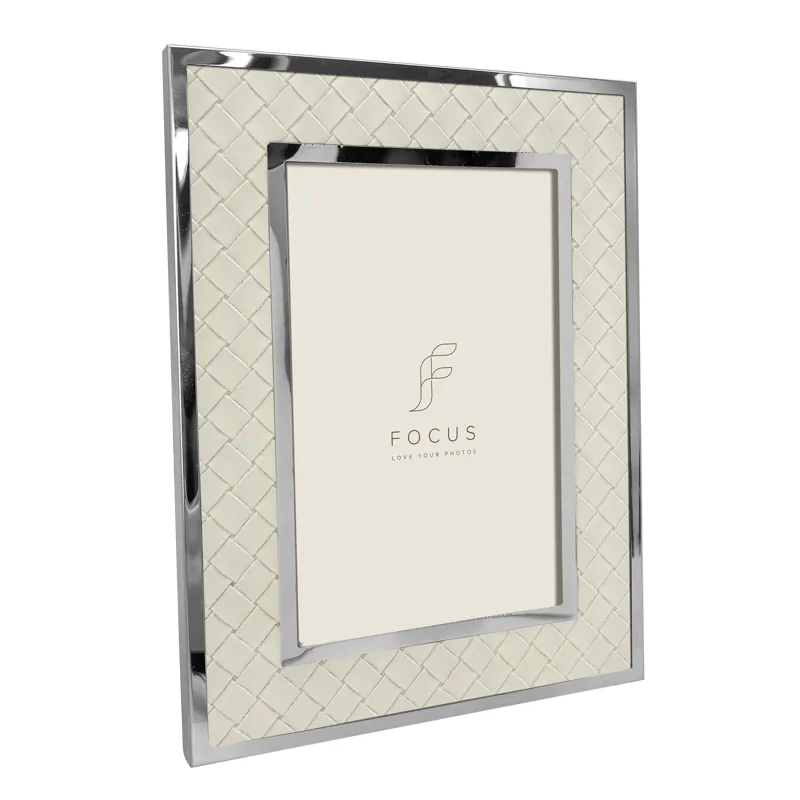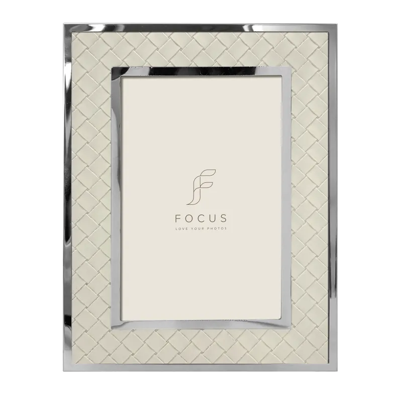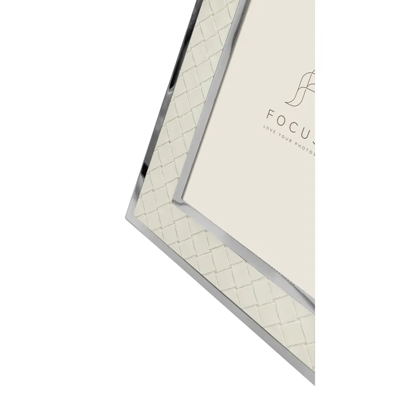The Camellia features a woven texture printed on a soft surface, creating a natural, calming atmosphere. This intricate pattern adds depth and craftsmanship, while the delicate sage tone brings a modern softness to any interior. A smooth silver metal edge surrounds both the inner and outer frame.