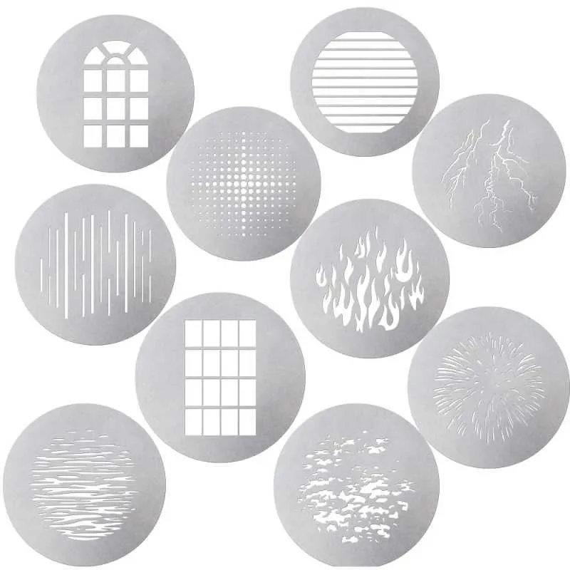 To complement the use of the Spotlight Mount Kit, the first professional-grade Bowens Mount projection attachment, Aputure has created a 10-piece GOBO Kit.