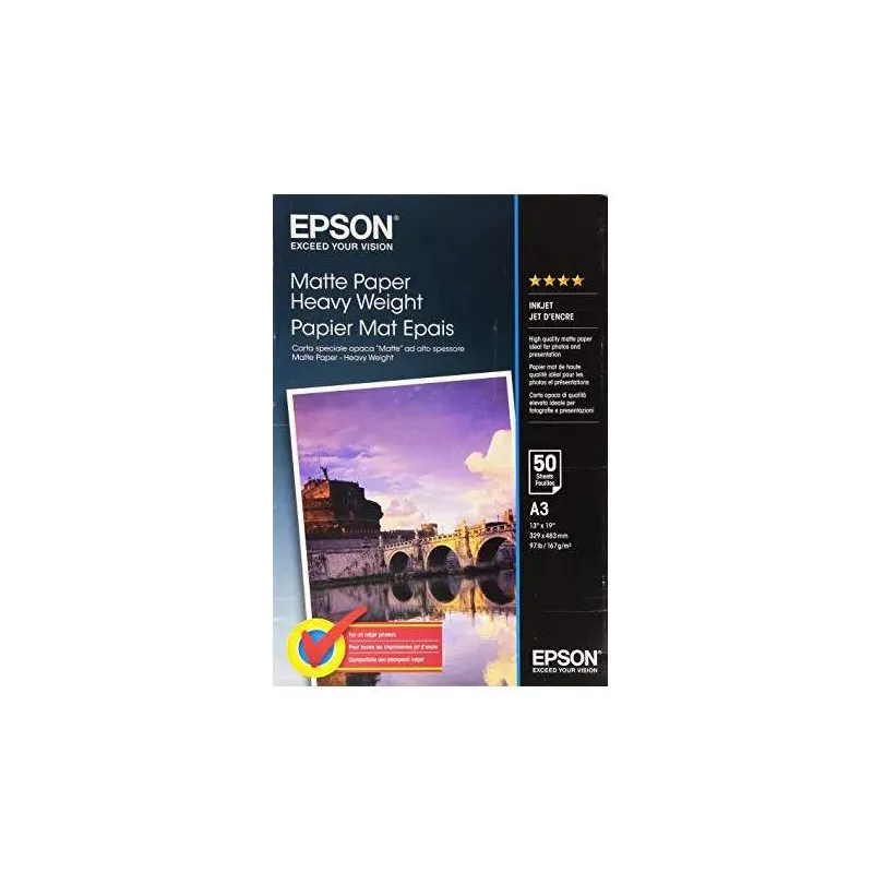 This Epson Matte Paper in A3 size is ideal for professional-quality prints. With a weight of 167 g/m, this pack includes 50 sheets of high-quality paper, perfect for printing photos and documents.