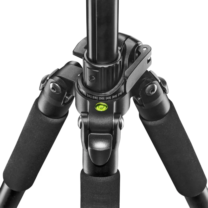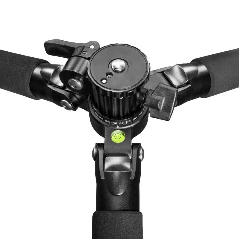 A bubble level in the tripod shoulder makes it easy to adjust the alignment of the tripod, and the intelligent construction of the tripod shoulder ensures neat, cushioned panoramic panning shots, even without the tripod head.