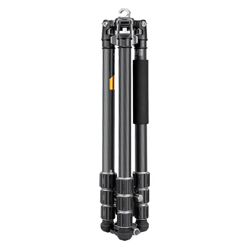 Constructed from carbon fiber with a tube diameter of 19 to 28 mm, the tripod is lightweight at just 1.76 kg, yet can support heavy cameras and lenses up to 16 kg without compromising stability.