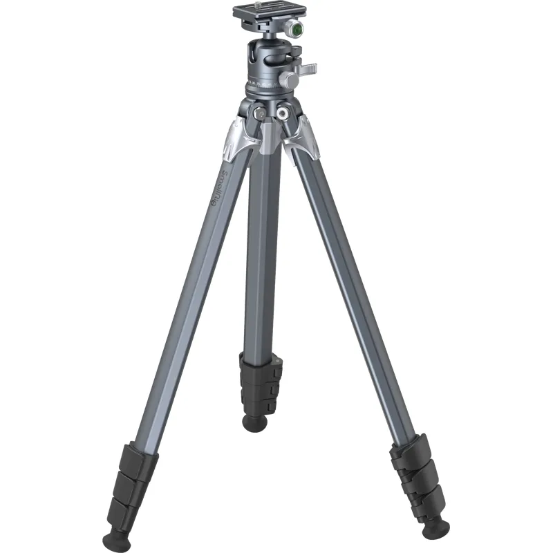The top 1/4"-20 & 3/8"-16 screw supports various fluid heads for shooting and video production; and the three 1/4"-20 threaded holes in leg joints allow attaching Magic Arm 3238 & 2163 for microphone, monitor, image transmission system, etc. The silicone feet pads have hidden spiked feet that suit varied complex terrains, can be used after removing the silicone foot pads.