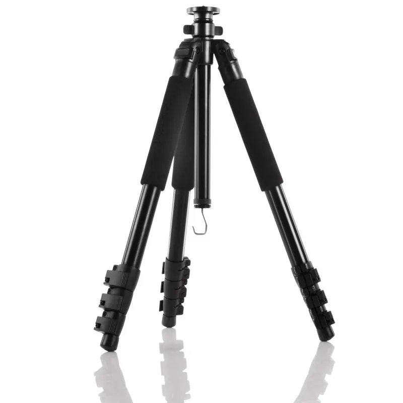 The center column is equipped with a 1/4 inch thread on the one end and a hook on the other end. The center column is removable and reversible. With it, you can realize ground level pictures. As the leg angles can be adjusted individually, you are particularly flexible. With the quick-release fasteners you can adjust the tripod according to your requirements. The foam coating provides stability at all times. A carrying bag completes the whole.