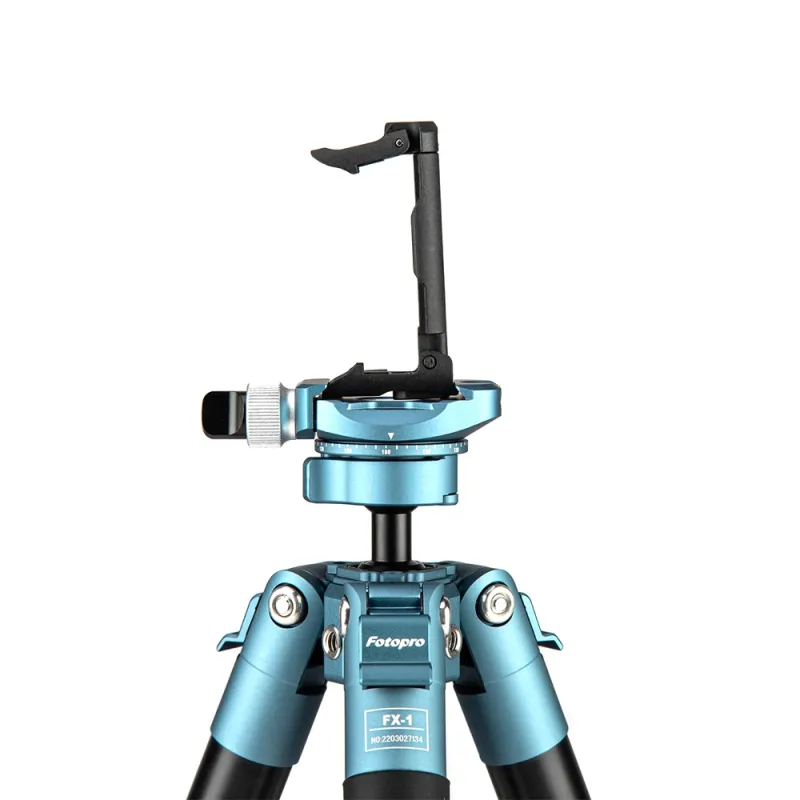 The innovative center column has another ace up its sleeve. Hidden inside it is a fold-out smartphone holder that will further expand the possibilities of working with the Fotopro Fly-1 tripod. Are you recording videos on TikTok? Or maybe you are conducting live reports on Instagram? This tripod is the perfect choice if your camera or camcorder is replaced by a smartphone. The mount is compatible with the Arca-Swiss standard, so you can install it on the included ball head in place of the mounting plate in seconds.