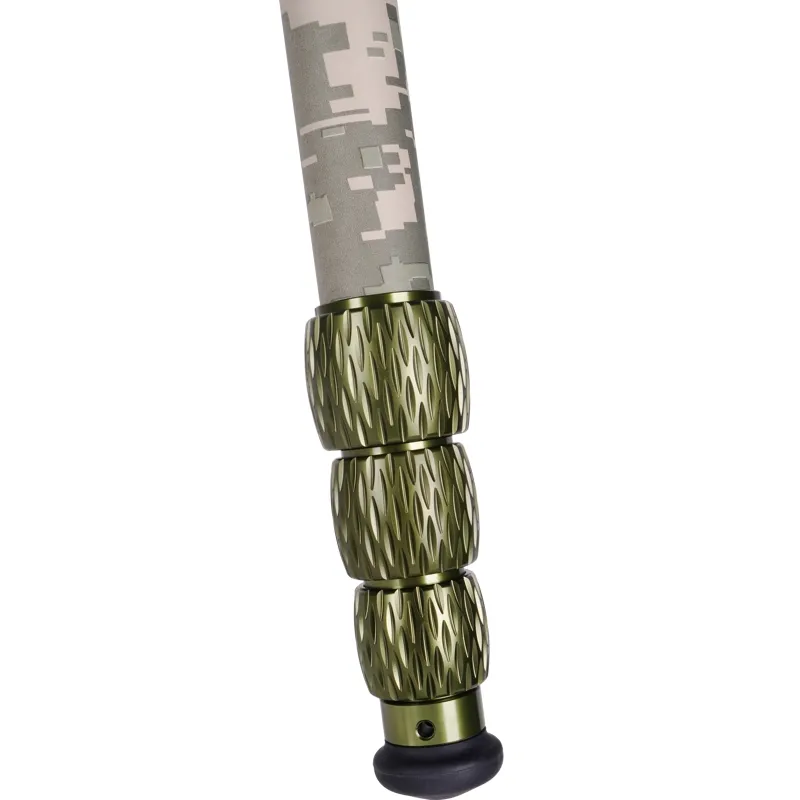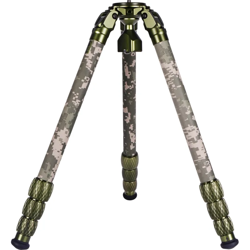 The CT-3204 Professional Carbon Fiber Tripod from Sirui is a durable carbon fiber tripod designed to blend into the wilderness with its green and gray camouflage pattern. It has a maximum height of 59" and a load capacity of 55 pounds, suitable for heavier camera setups. The CT-3204 features a dual 3/8"-16 flat base/75mm bowl mount and a built-in weight hook. The tripod legs are crafted from lightweight yet stable ten-layer carbon fiber and feature smooth twist locks that loosen with just a quarter turn.