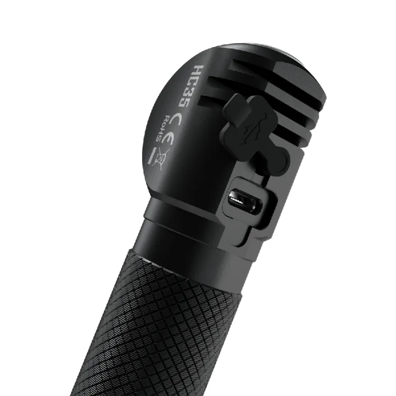 The NITECORE HC35 comes with a high performance, 4000mAh 21700 li-ion battery that provides up to 1200 hours of uninterrupted operation. It can also run on any >8 high discharge 18650 battery, a pair of CR123, or RCR123 batteries when you use included battery adapter sleeve. With a built-in micro USB charging port, and LED power indicator, the HC35 will not leave you in the dark when paired with a rechargeable battery.