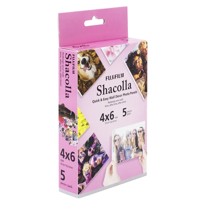 The word Shacolla is a mix of the Japanese word “Shashin 写真” that means picture and “colla” the shortage of the word “collage”. Shacolla is a double-side self-adhesive foam panel that can be used several times to attach new pictures. Due to the low adhesion of the self-adhesive glue Shacolla can be repositioned freely on the wall.