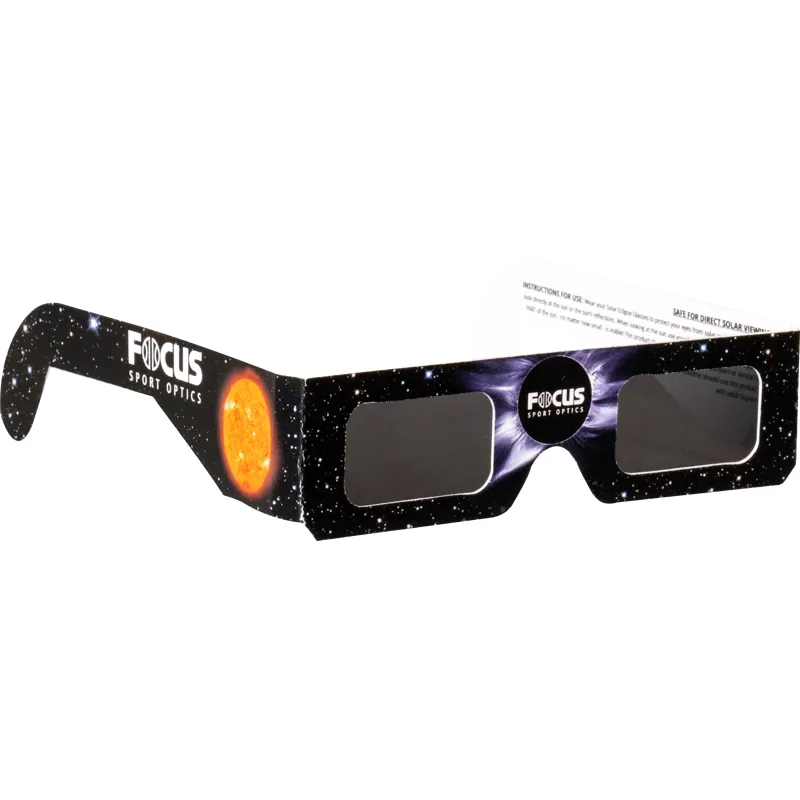 Iegūstiet iespēju raudzīties tieši uz Saules aptumsumu! “Focus Sport Optics” Saules aptumsuma brillēm ir visaugstākās kvalitātes filtri, kas samazina ultravioletā, infrasarkanā un intensīvās redzamās gaismas staru kaitīgo iedarbību. Ar mūsu aptumsuma briļļu komplektu jūs varat pilnīgi droši raudzīties uz sauli un novērot gaidāmos aptumsumus.
