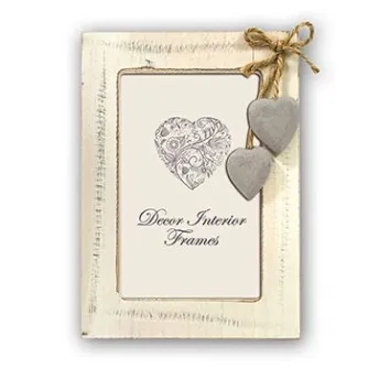 The Zep Photo Frame HHP123 Metz Cream 20x30 cm is a wooden photo frame suitable for 1 photo of 20x30 cm. It features a Metz Cream vintage beige wooden frame with a 3D heart-shaped decoration, available in different sizes, and a love theme. The total dimensions, including the frame, are 24x34 cm (W x H).