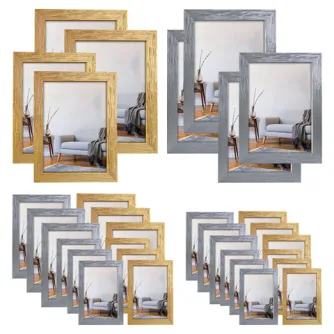 Because the frames come from the same collection, this ensures a beautiful presentation in your shop or webshop. The included photo frames up to 20x30 cm can be placed on a surface or hung on the wall. These frames have a foot on the back, which allows you to place the frame both horizontally and vertically. The larger frames can only be hung on the wall.